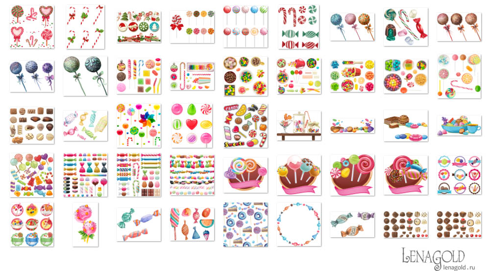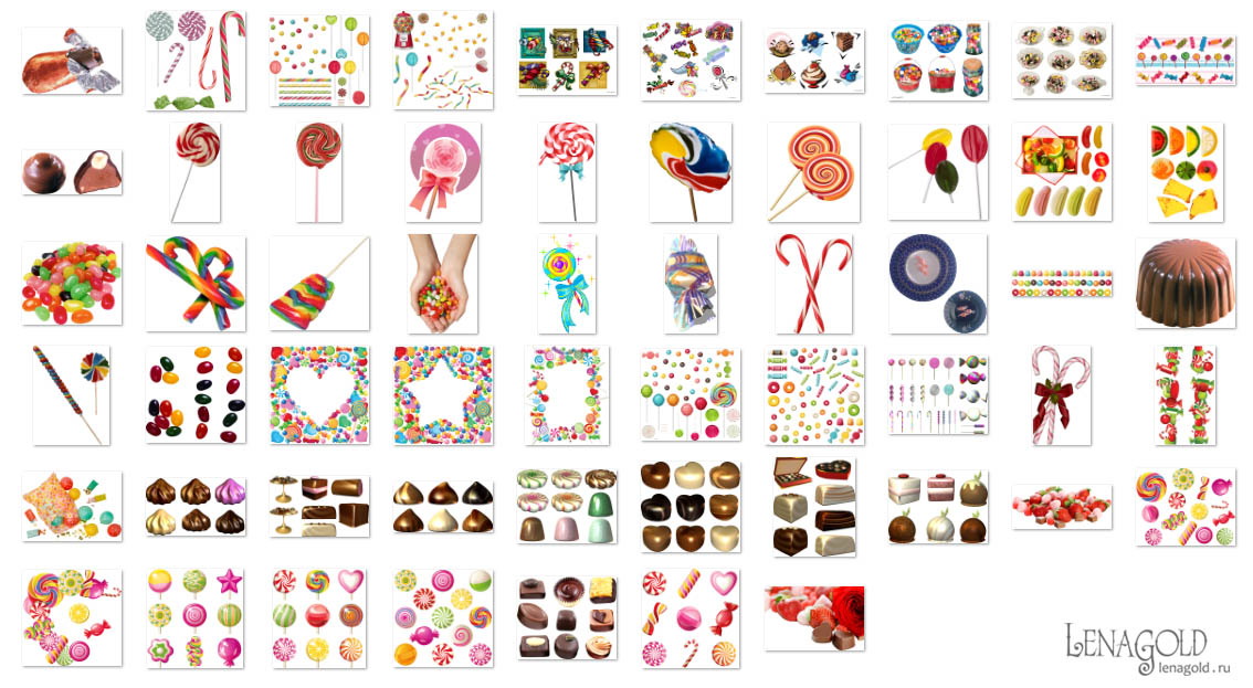 Конфеты и леденцы - 3 Колличество файлов - 45 Формат - PNG превью Скачать архив - 304 Mb |