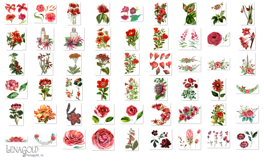 Красные цветы - 4 Количество файлов - 54 Формат - PNG превью Скачать архив - 384 Mb |