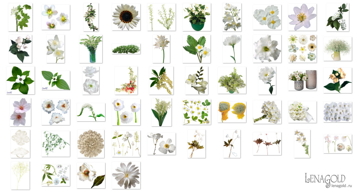 Белые цветы - 7 Колличество файлов - 56 Формат - PNG превью Скачать архив - 370 Mb |