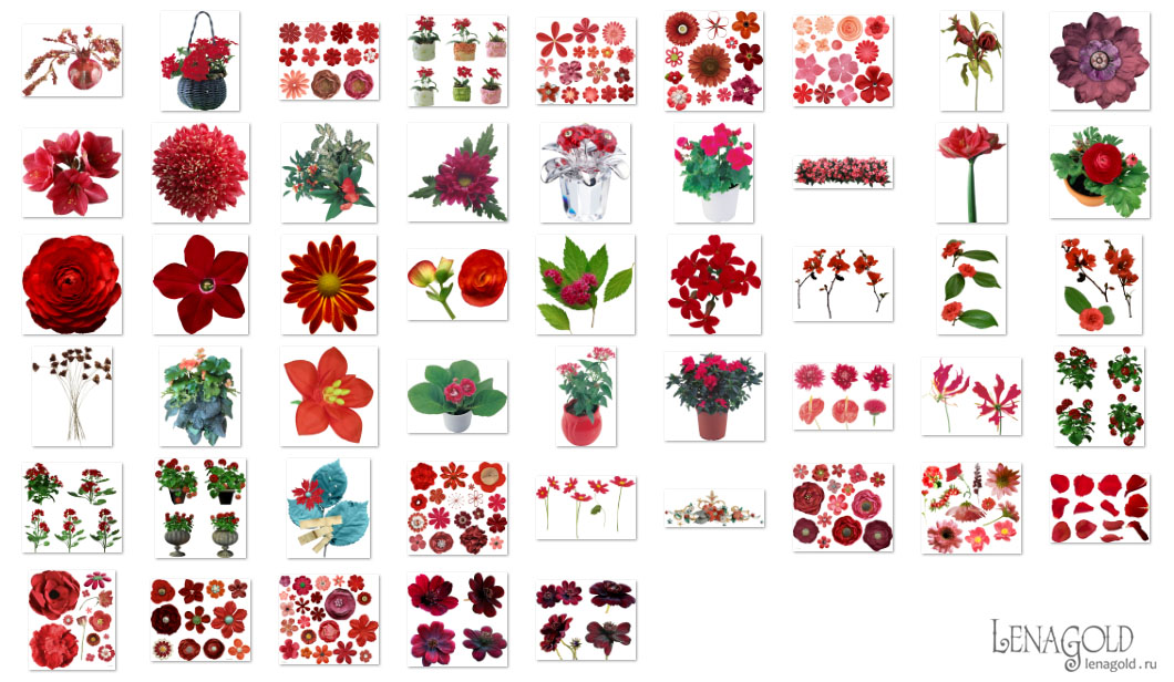 Красные цветы - 4 Количество файлов - 54 Формат - PNG превью Скачать архив - 384 Mb |